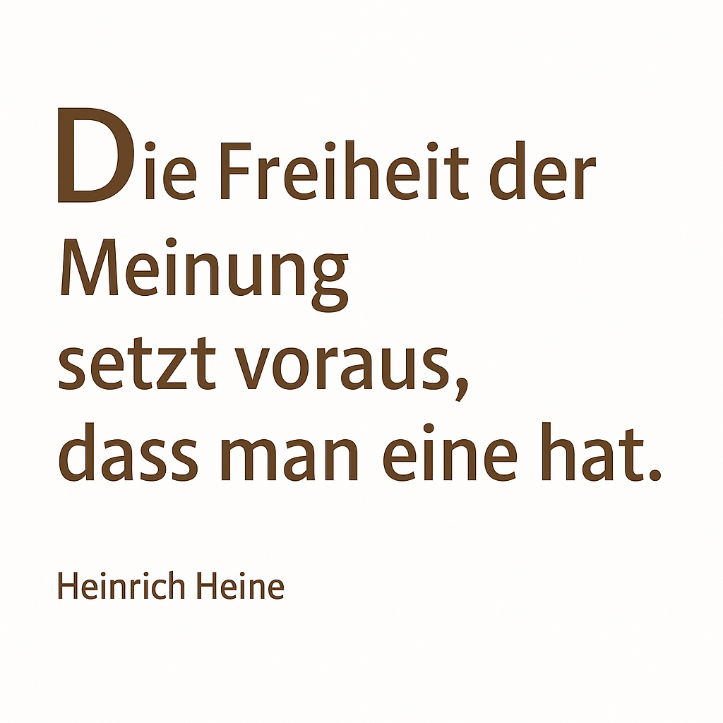 Wir sehen uns als tolerantes Forum für andere Stimmen, Blickwinkel und Perspektiven ... getreu den alten Deutschen Dichtern, wie im Besonderen der junge Heinrich Heine, der sagte: "Das ist schön bei den Deutschen: Keiner ist so verrückt, dass er nicht einen noch Verrückteren fände, der Ihn versteht."
